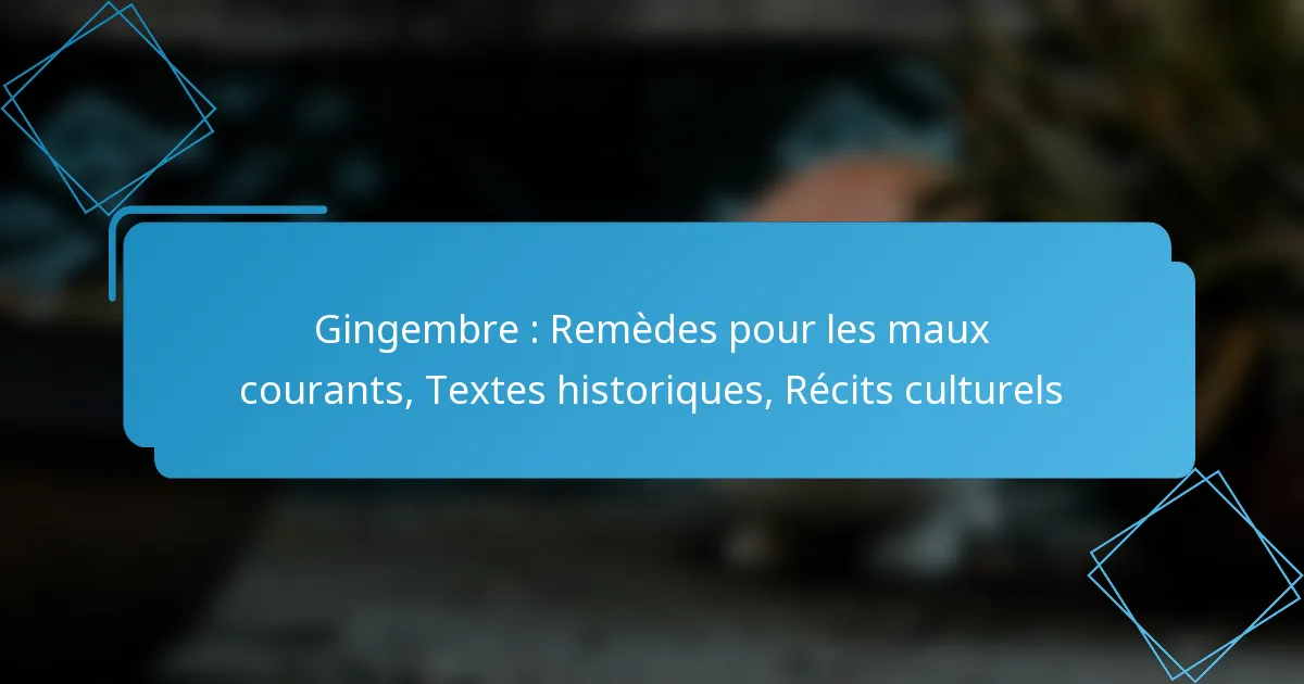 Quelles narrations culturelles soulignent l’importance du gingembre ?